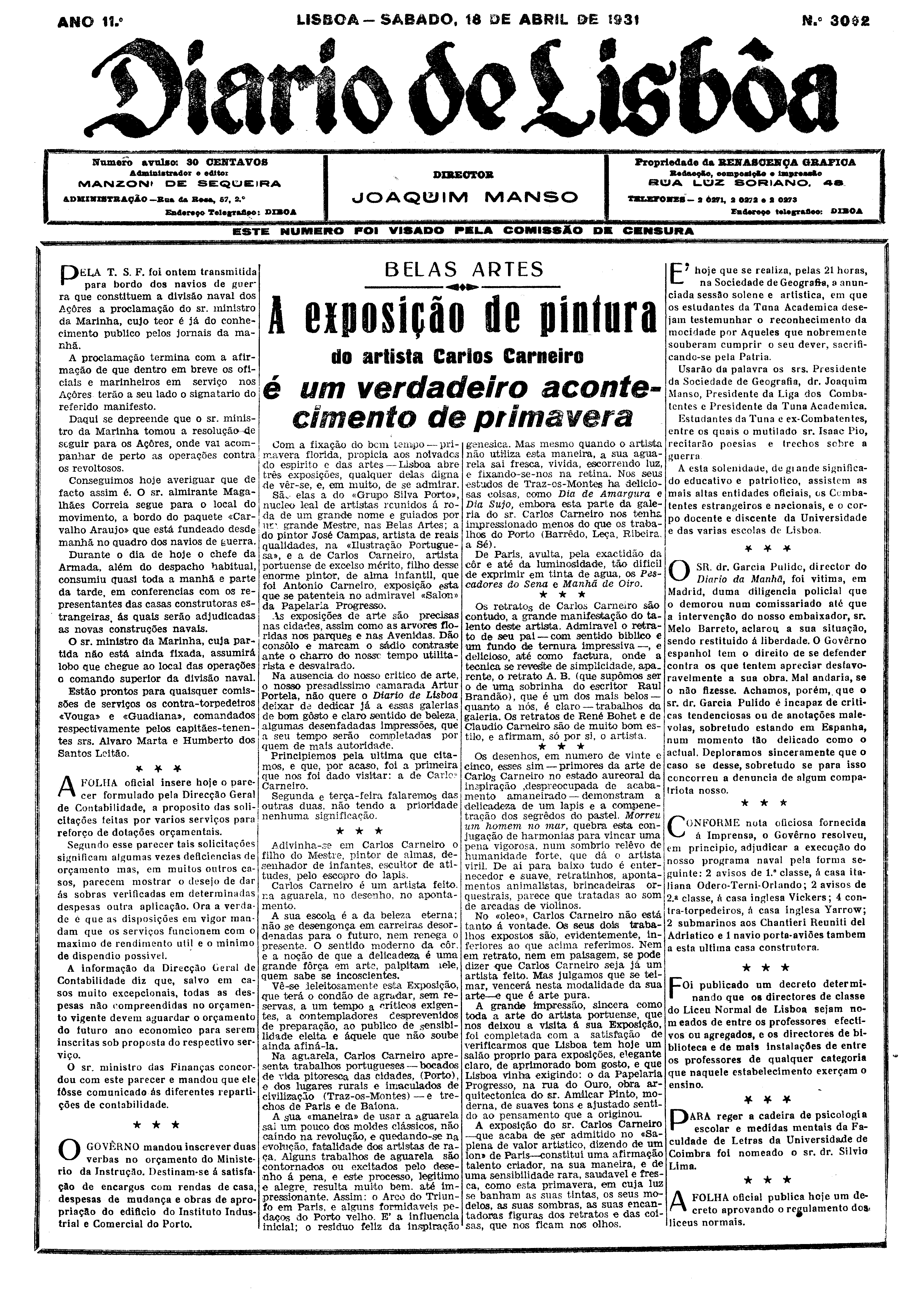 (1931), "Diário de Lisboa", nº 3062, Ano 11, Sábado, 18 de Abril de 1931, Fundação Mário Soares / DRR - Documentos Ruella Ramos, Disponível HTTP: http://hdl.handle.net/11002/fms_dc_29529 (2025-12-28)