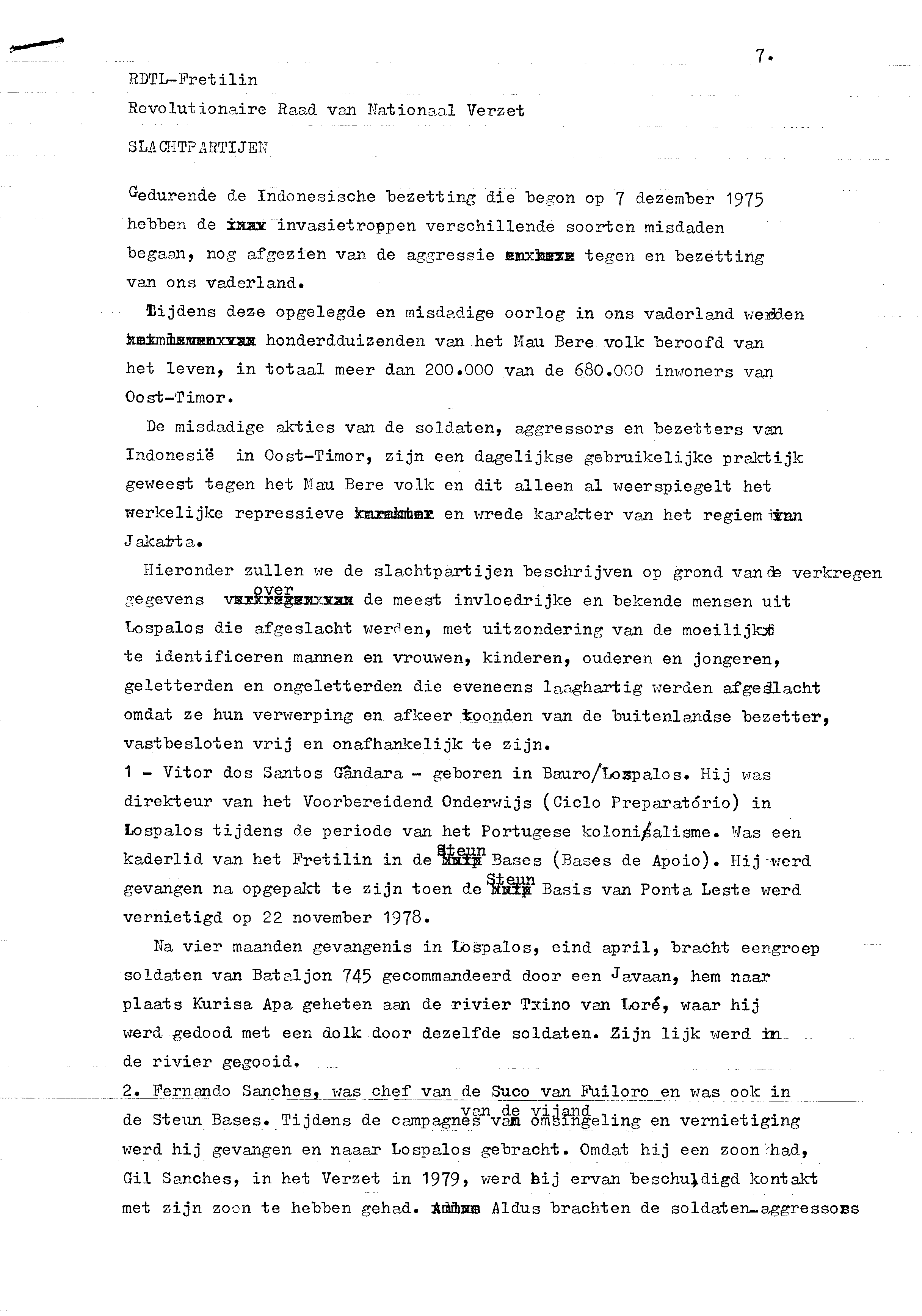 Instituição: Arquivo & Museu da Resistência Timorense Pasta: 06443.014Título: Organização política em Timor-LesteAssunto: Relatório contendo informação sobre vários timorenses que exercem a actividade política em Timor-Leste.Data: Segunda, 25 de Julho de 1983Observações: Em língua holandesa, com anotações manuscritas.Fundo: Arquivo da Resistência Timorense - TAPOLTipo Documental: DocumentosDireitos: A publicação, total ou parcial, deste documento exige prévia autorização da entidade detentora.