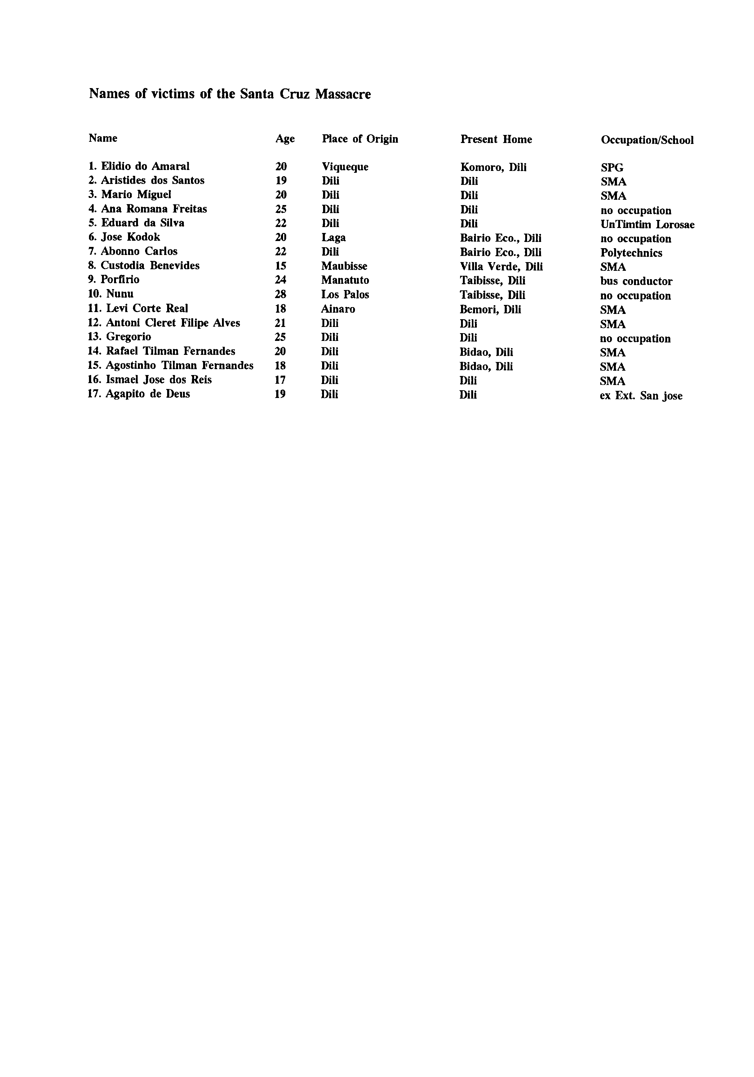 (1991), "Lista de mortos no massacre de Santa Cruz", Fundação Mário Soares / Arquivo da Resistência Timorense - TAPOL, Disponível HTTP: http://hdl.handle.net/11002/fms_dc_140079 (2025-12-28)