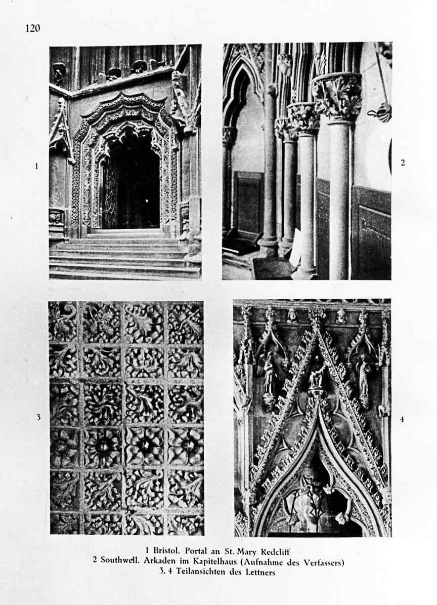 Instituição: Fundação Mário Soares e Maria Barroso Pasta: 07129.005.182Assunto: Reprodução de quatro imagens. Transcrição das legendas: 1. Bristol. Portal an St. Mary Redcliff 2. Southwell. Arkaden im Kapitelhaus (aufnahme des Verfassers) 3,4. Teilansichten des Lettners.Opaco/Transparente: OpacoNegativo/Positivo: PositivoPB/Cor: Preto e BrancoDimensões da Imagem: 12 x 17,1cmFundo: DTC - Documentos Mário e Alice Chicó - Sílvia ChicóTipo Documental: FotografiasDireitos: A publicação, total ou parcial, deste documento exige prévia autorização da entidade detentora.