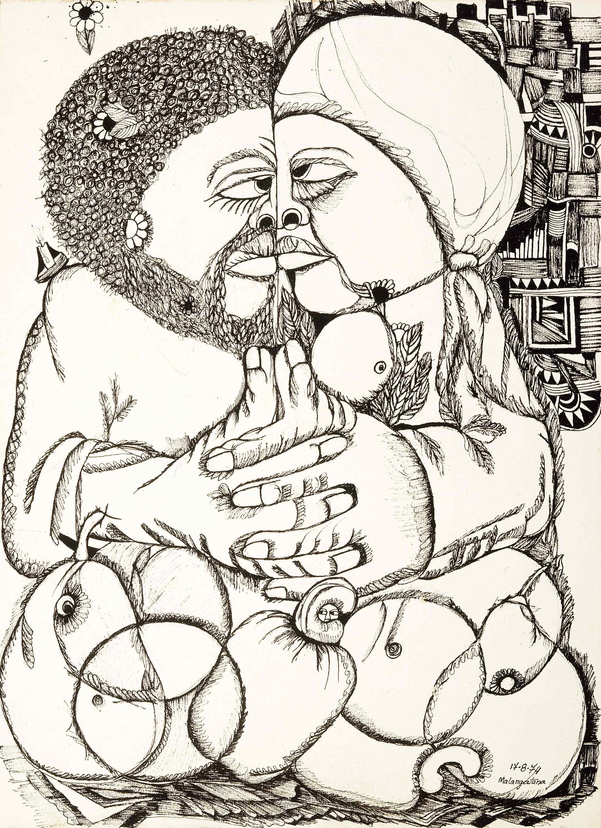 Instituições: Fundação Mário Soares e Maria Barroso Malangatana Valente Ngwenya Pasta: 07210.188.000Título: Uma Cena de AmorAutor: Malangatana NgwenyaData: 1974Assinado: SimDimensões: 69,5 x 50,5Técnica: Tinta da ChinaSuporte: PapelObservações: Sem moldura; datado: 17-8-74Localização: Galeria Museu Hloyasi - Rua Camões 359 - Maputo, MoçambiqueProprietário: Colecção do ArtistaEstado de conservação: RazoávelNecessidade de restauro: SimTipo de restauro: ManchasAutor da reprodução: José Pessoa, assistido por José António Moreira e Filomena André (Fundação Mário Soares)Tipo de reprodução: Transparência CorData de reprodução: 2005Fundo: DMT - Documentos MalangatanaTipo Documental: ARTEDireitos: A publicação, total ou parcial, deste documento exige prévia autorização da entidade detentora.