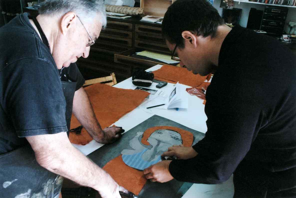 Miguel Proença (2003), "O artista Bartolomeu dos Santos e seu assistente Miguel no atelier em Tavira", Fundação Mário Soares / DMT - Documentos Malangatana, Disponível HTTP: http://hdl.handle.net/11002/fms_dc_117598 (2025-12-25)