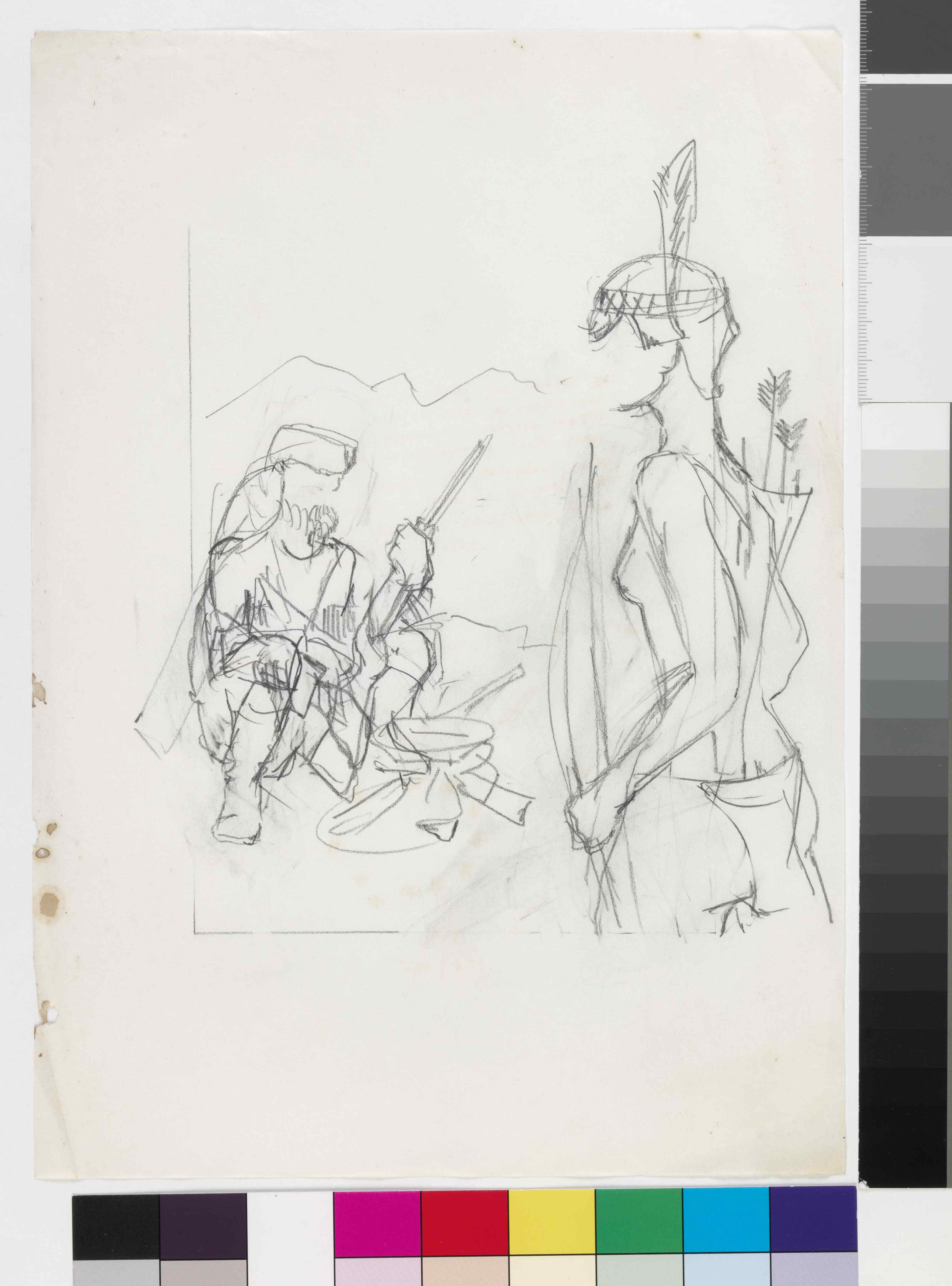 Pasta: 11181.001.002Título: Annick et les FauvesAssunto: Estudo pertencente à série Annick et les Fauves. Mulher, arco e flecha, homem, espingarda.Autor: Ruy Duarte de CarvalhoTécnica: GrafiteSuporte: PapelAutor da reprodução: António CoelhoFundo: Ruy Duarte de CarvalhoTipo Documental: ARTEDireitos: A publicação, total ou parcial, deste documento exige prévia autorização da entidade detentora.
