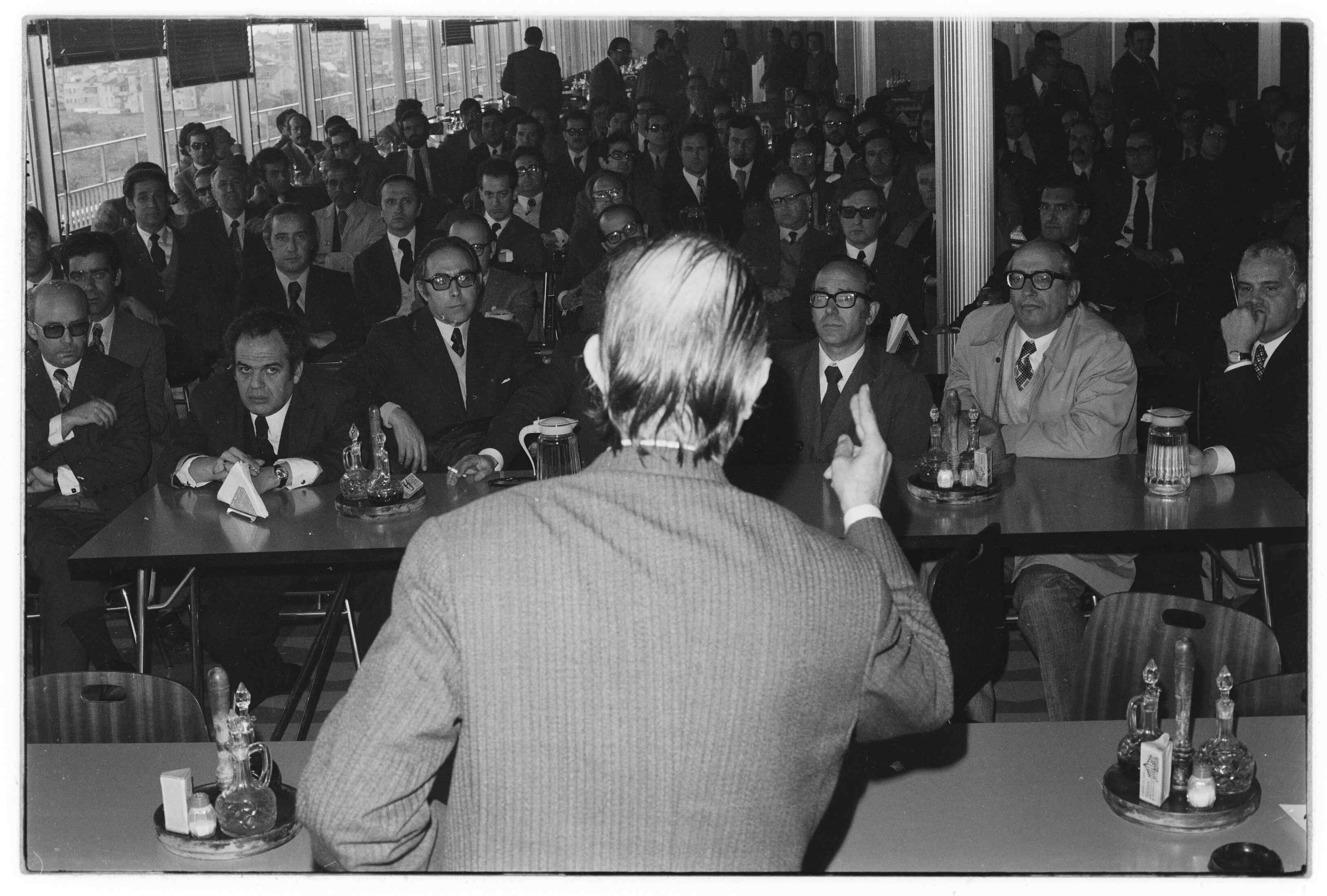 Pasta: 12278.003.004Assunto: Assembleia de juízes na cantina do Palácio de Justiça, em Lisboa.Autor: Inácio LudgeroInscrições: Reunião Magna de Juízes na Cantina do Palácio da Justiã; 3/5/74; InácioData: sexta, 3 de maio de 1974Opaco/Transparente: TransparenteNegativo/Positivo: NegativoPB/Cor: Preto e brancoAutor da reprodução: António CoelhoFundo: Inácio LudgeroTipo Documental: FotografiasDireitos: A publicação, total ou parcial, deste documento exige prévia autorização da entidade detentora.